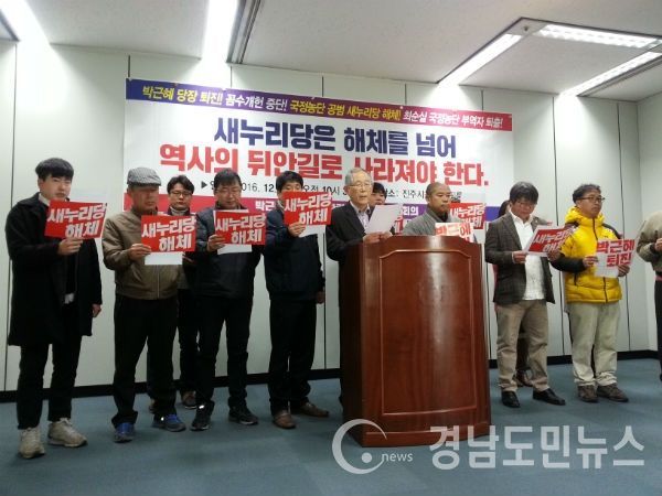 (진주/조권래 기자) = 시국회의(상임대표 서도성)는 지난 1일 진주시청에서 기자회견을 열고 박근혜 대통령의 3차 담화에 대해 입장을 내놨다.