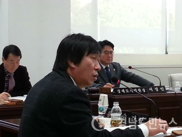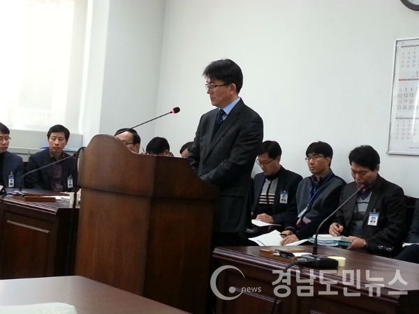 | 김병무 도시계획과장이 류재수 의원의 레일바이크 수상한 토지거래에 대해 질문을 받고 답변하고 있는 모습/ 사진=조권래 |