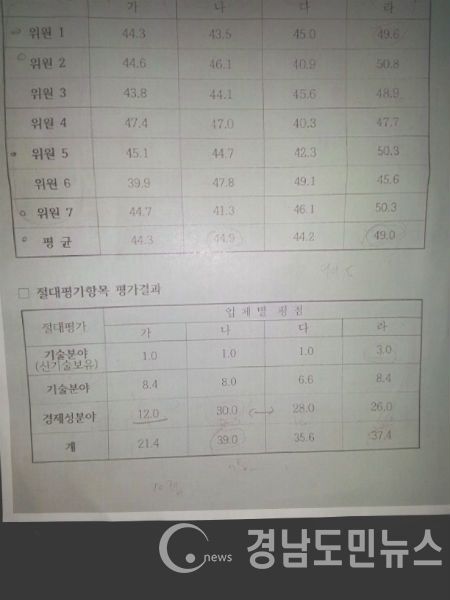 류 의원은“진주시가 계약을 진행한 방식은 업체 기술제안을 받아 평가위원회 심의를 통해 업체를 선정하는 방식을 취했다”고 설명하며, “평가위원회의 업체 선정과정에서 72억을 재료비를 제출한 B업체가 절대성평가(신기술보유, 기술분야, 경제성분야)에서 1위를 받았지만, 심사위원 평가에서 낙찰된 A업체가 모든 위원들로부터 1위를 받음으로서 낙찰자가 바뀌게 됐다”며 강한 의혹을 제기했다.