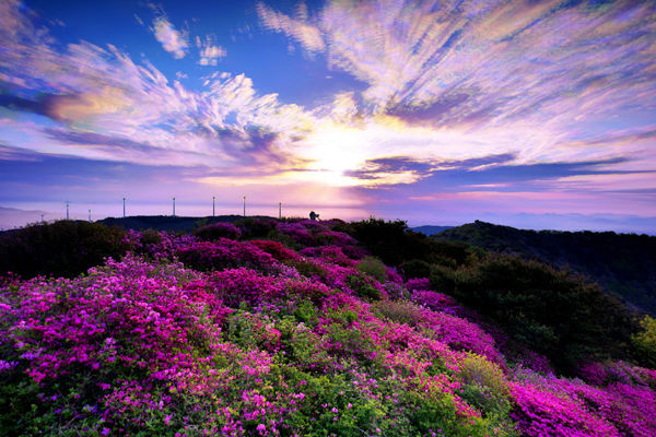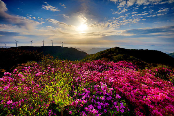 24일 이른 새벽부터 사진작가들이 산철쭉과 일출을 담으려고 분주한 가운데 연분홍 철쭉과 붉은 철쭉, 하얀 철쭉 등 형형색색 색깔로 철쭉 물결로 출렁이고 있다.