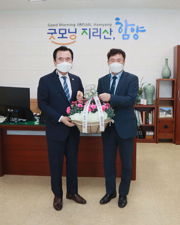 박유동 총장은 다음 동참자로 지목한 서춘수 함양군수에게 꽃바구니를 전달하며 ‘플라워 버킷 챌린지’의 서부경남권 확산을 응원했다.