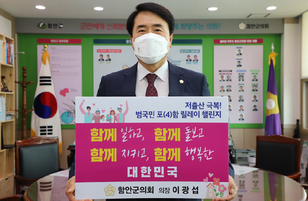 [경남도민뉴스] 함안군의회 이광섭 의장이 5월 4일, ‘저출산 극복 함께해요! 범국민 포(4)함 릴레이 챌린지’에 동참했다.