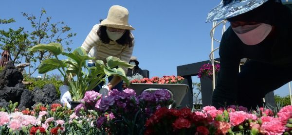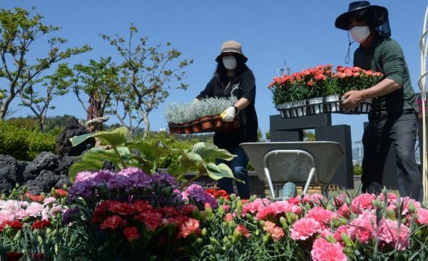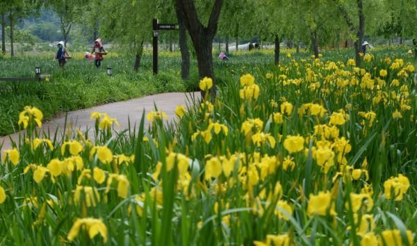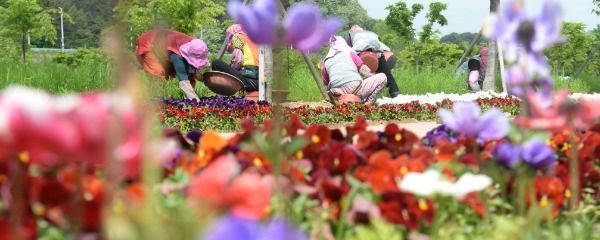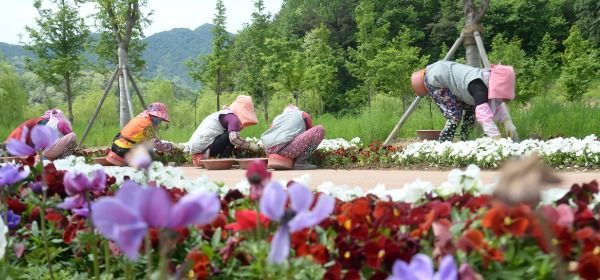 13일 경남 거창군 남상면 월평리에서 경상남도 1호 지방정원으로 등록된 거창창포원 관계자들이 오는 15일 오후 2시 개장을 앞두고 분주하게 움직이고 있다.
