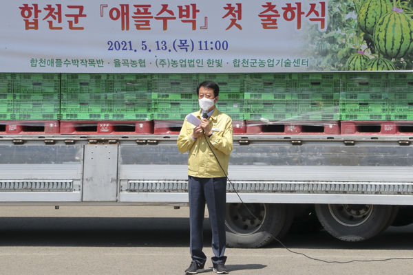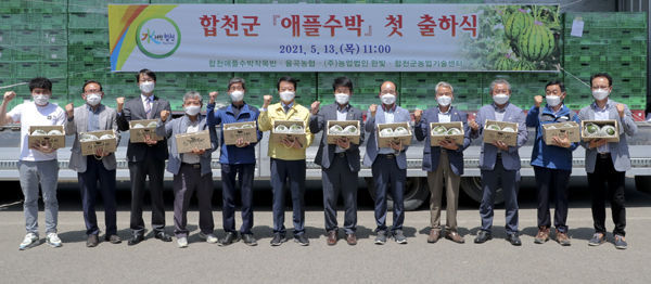 [경남도민뉴스] 합천군(군수 문준희)은 지난 13일 첫눈에반한딸기유통센터에서 문준희 군수, 배몽희 군의회 의장, 강호동 율곡농협 조합장, 강철훈 농업회사법인 한빛 대표이사, 이장석 애플수박작목반 회장과 작목반원들이 참석한 가운데 애플수박 첫 출하식을 가졌다.