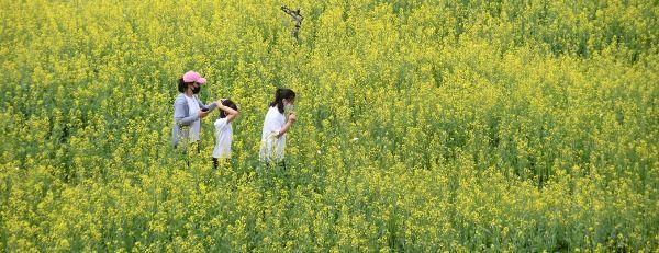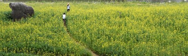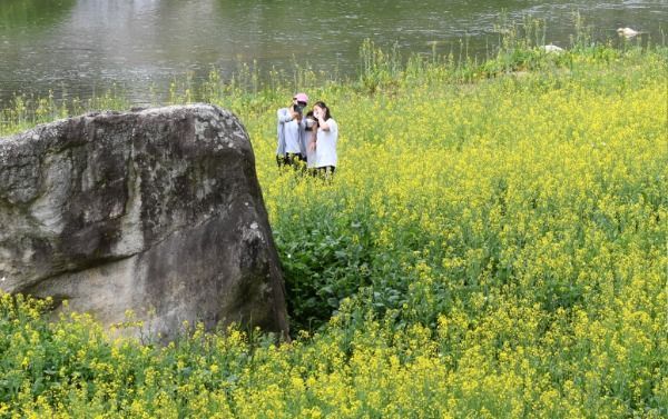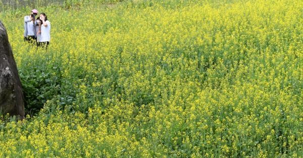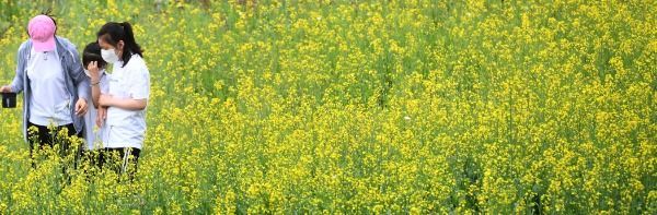 6일 경남 거창군 거창읍 상림리 위천천 강가에 만발한 유채꽃이 노랗게 피어 있다.