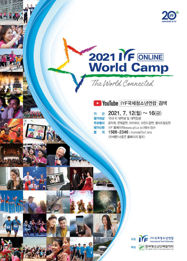 ![[경남도민뉴스] ‘도전, 변화, 연합’의 모토 아래 모인 전 세계 대학생들이 교류하며 마음의 세계를 넓혀가는 글로벌 리더의 산실, ‘IYF 월드캠프’가 다음달 12일(월)부터 온라인으로 개최된다.](/data/photos/editor/2106/20210628150441_03033d8ec53655cdc7562d752443ea25_ecl9.jpg)
