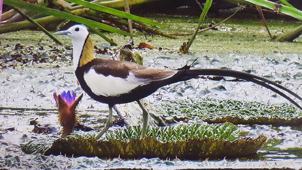 [경남도민뉴스] 2020년에는 긴 장마와 집중호우로 볼 수 없었던 가시연은 현재 목포와 쪽지벌 일대에 영역을 넓혀가면서 자주색 꽃을 하나씩 모습을 드러내고 있으며, 우포늪을 찾아온 귀한 여름철새인 물꿩이 가시연꽃이 핀 연잎위에 산란하는 모습도 조만간에 관찰할 수 있을 것으로 예상된다.