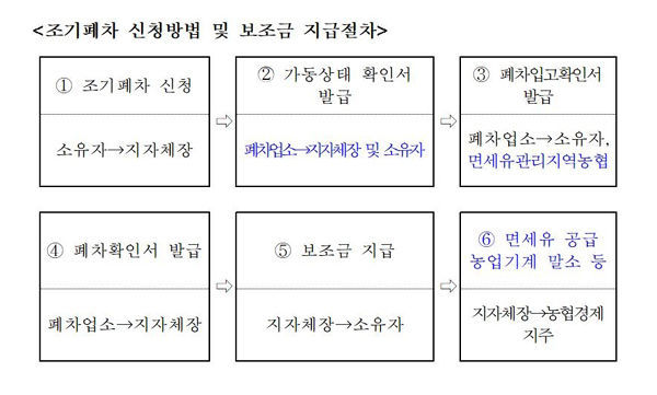 신청대상은 농업경영체에 등록한 농업인과 농업법인이며, 지원대상 농기계는 농협 ‘면세유 관리시스템’ 기준 등록된 2013년 이전(‘12. 12.31.) 생산된 경유 트랙터·콤바인에 한한다.