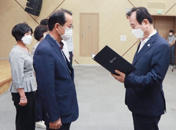 또한 그 간 업무추진에 대한 공로를 인정받아 선정된 정부모범공무원 2명, 경상남도 자랑스러운 공무원 2명이 증서와 표창을, 상반기 인구늘리기 추진과 근무환경 평가에서 우수한 성과를 낸 본청 2개부서와 2개면에서 상장을 각각 수상했다.