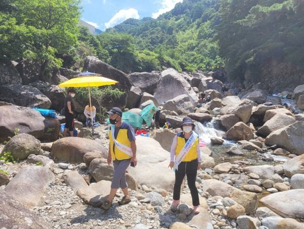 이날 참가자들은 대표적인 계곡인 백무동과 추성계곡 등을 찾은 관광객들에게 코로나19 확산 방지를 위해 물놀이 시 마스크를 착용해 줄 것과 물놀이 사고가 나지 않도록 안전수칙을 준수해 줄 것을 홍보하였다.