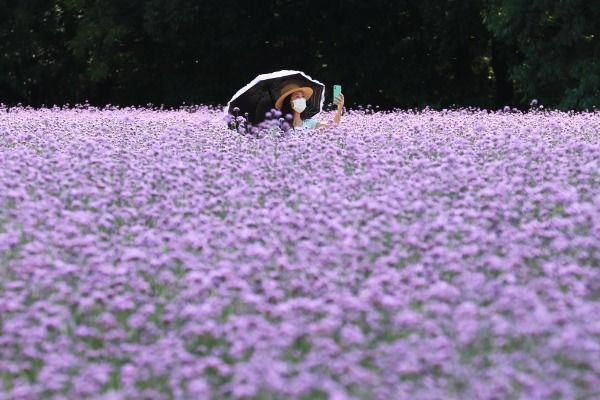 [경남도민뉴스] 폭염주의보가 내려진 28일 오후 경남 함양군 상림공원에 조성한 꽃밭에서 보라색 버들마편초가 만개해 시민들의 눈길을 끌고 있다.
