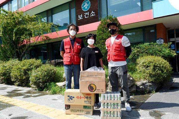 송찬길 대표는 28일 함양군보건소를 찾아 토스트, 우유, 음료수 등 각각 100개씩을 기탁하고 무더위 속에서 코로나19 확산 방지를 노력하는 보건소 직원들에게 감사의 뜻을 전했다.