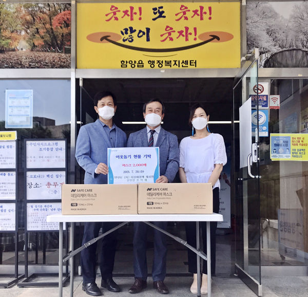 이에 정해문 함양읍장은 “최근 급증하는 코로나19 감염과 무더위까지 겹쳐 모두가 어려운 시기임에도 소외된 이웃들을 위해 온정의 손길을 내어주신 조익제 본부장님께 감사드린다. 기탁해 주신 마스크는 우리지역의 코로나19 감염 예방을 위해 필요한 곳에 잘 전달하겠다.”고 전했다.