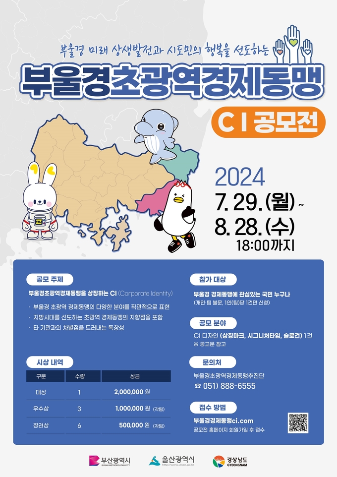[경남도민뉴스] 부산시는 울산시, 경상남도와 내일(29일)부터 '부울경초광역경제동맹 상징(CI)' 공모전을 개최한다고 밝혔다.