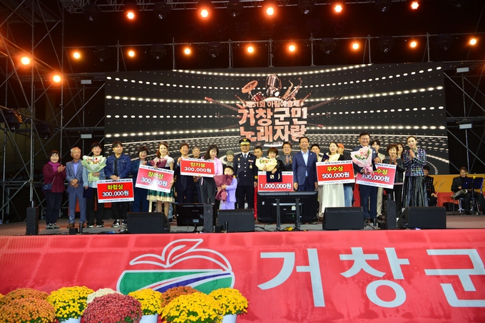 거창군민노래자랑 총상금 3백만원은 본선 참가자 경연을 통해 대상(1백만원), 최우수상(7십만원), 우수상(5십만원), 장려상(3십만원), 인기상(3십만원), 화합상(2십만원) 상금과 상장이 함께 수여되며, 수상자에게는 거창지역 가수로 활동할 수 있도록 (사)한국연예예술인총연합회 거창지회 회원 자격을 부여한다.