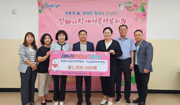 [경남도민뉴스=최미정기자] (재)김해시복지재단 김해시장애인종합복지관은 8월 19일김해시어린이집연합회 국공립분과위원회로부터 장애인 프로그램 지원을 위한 지정기탁금(100만원)을 전달받았다고 밝혔다.