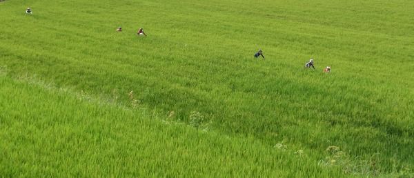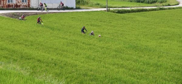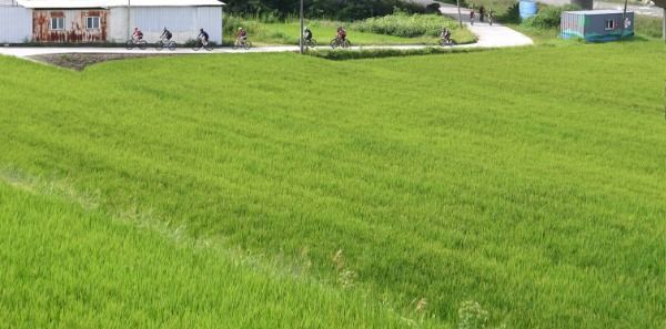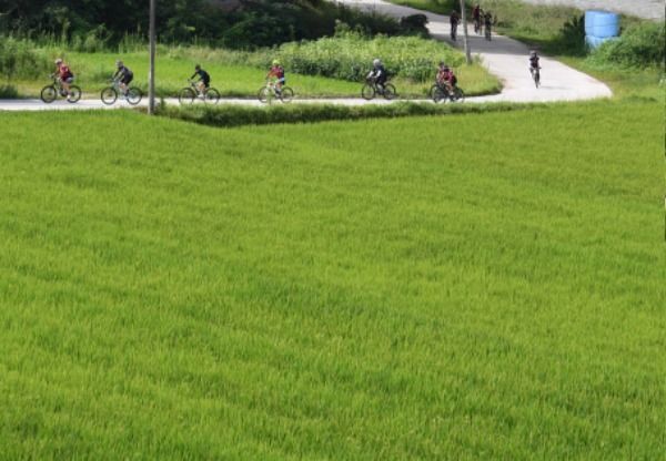 [경남도민뉴스] 여름 더위가 가고 선선한 가을이 온다는 처서를 하루 앞둔 22일 경남 거창군 마리면 장백마을 앞 들판을 시민들이 자전거를 타고 달리고 있다.