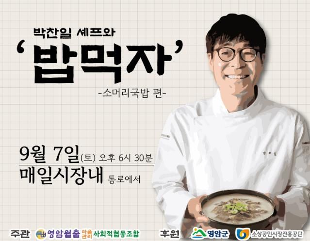 우승희 영암군수는 “대통령상을 두 번이나 수상한 영암한우로 박찬일 셰프가 만든 소머리국밥을 함께 나눠 먹고, 우리 음식의 전국화와 매일시장의 활성화를 함께 이야기해보는 요리 콘서트에 많은 분들과 함게 하고 싶다”고 전했다.