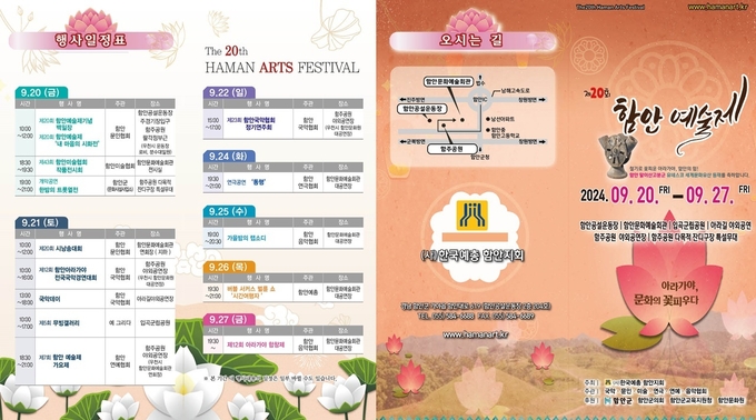[경남도민뉴스=이상민 기자] 아라가야의 고도 함안에서 열리는 문화·예술 축제 ‘제20회 함안예술제’가 오는 20일부터 27일까지 8일 동안 ‘아라가야, 문화의 꽃 피우다’ 라는 주제로 함안문화예술회관, 함주공원, 아라길야외공연장 및 입곡군립공원 일원에서 열린다.