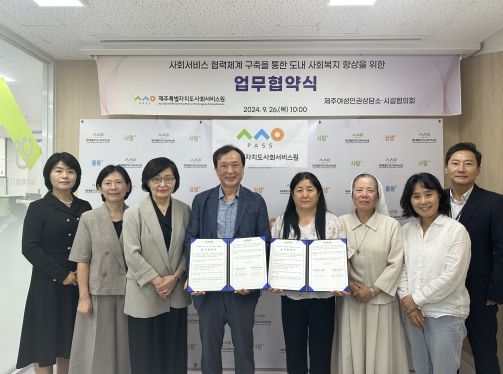 [경남도민뉴스=경남도민뉴스 기자] (재)제주특별자치도사회서비스원과 제주여성인권상담소·시설협의회는 26일 사회서비스 협력체계 구축을 통한 도내 사회복지 향상을 위한 업무협약을 체결했다고 밝혔다.