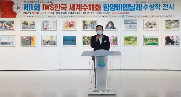 서춘수 군수는 “엑스포를 기념하여 제1회 IWS한국 세계수채화 함양비엔날레를 개최하게 되어 매우 뜻깊다”며 “코로나19로 세계 유명작가들을 영상으로만 만나 많이 아쉽지만 이번 비엔날레를 통해 2021 함양산삼항노화엑스포가 더욱 빛나고 함양을 전 세계에 알리는 계기가 되었다.”고 말했다.