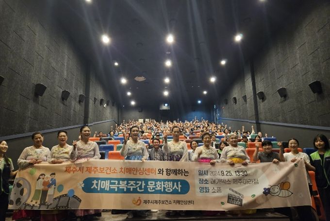 [경남도민뉴스=경남도민뉴스 기자] 제주보건소 치매안심센터는 25일 메가박스 제주아라점에서 치매극복주간 문화행사의 일환으로 영화관람 행사와 어르신들의 한국무용 공연을 진행했다.