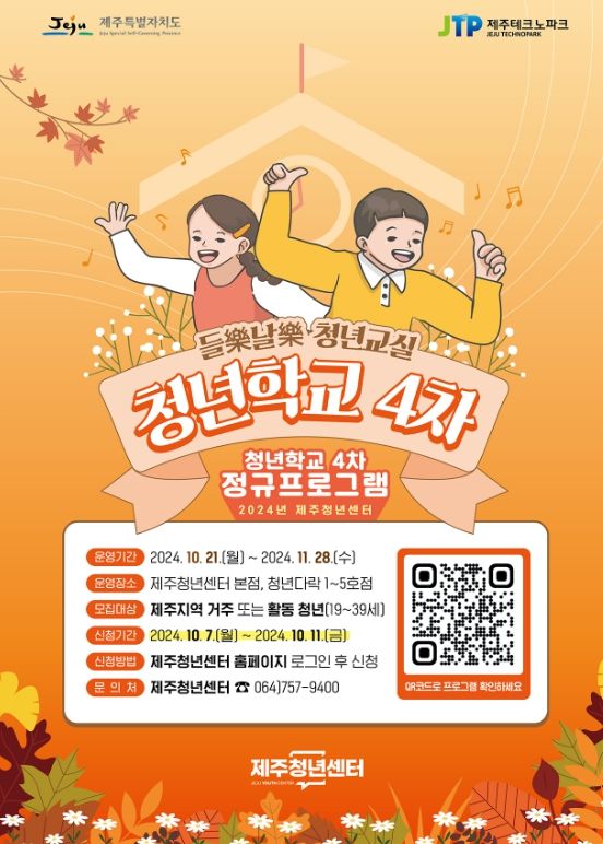 [경남도민뉴스=경남도민뉴스 기자] 제주특별자치도와 제주청년센터(제주TP 산하)가 10월 7일 부터 10월 11일까지 청년학교 4차 정규프로그램 참여자를 모집한다.