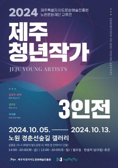 [경남도민뉴스=경남도민뉴스 기자] 제주문화예술진흥원은 10월 5일부터 13일까지 서울시 노원구 경춘선숲길갤러리에서 ‘2024 제주청년작가 3인전’을 개최한다. 이번 전시는 제주문화예술진흥원과 노원문화재단의 지역 문화예술 네트워크 형성을 위한 교류전으로 진행된다.