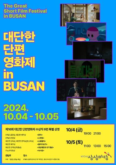 [경남도민뉴스=경남도민뉴스 기자] 제16회 대단한 단편영화제 수상작을 특별 상영하는 ‘대단한 단편영화제 in 부산'이 오는 10월 4일부터 5일까지 이틀간 KT·G 상상마당 부산 13층 루프탑에서 진행된다.