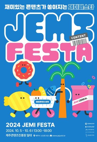 [경남도민뉴스=경남도민뉴스 기자] 제주특별자치도와 (재)제주콘텐츠진흥원에서는 Jump(성장하는 재미), Every(함께하는 재미), Make(만드는 재미), Inform(알리는 재미) 4가지 운영방향을 모토로 지역 콘텐츠 창작자들의 상품 전시, 체험 및 마켓을 만나볼 수 있는 페스티벌 ‘2024 JEMI페스타’를 진행한다고 밝혔다.