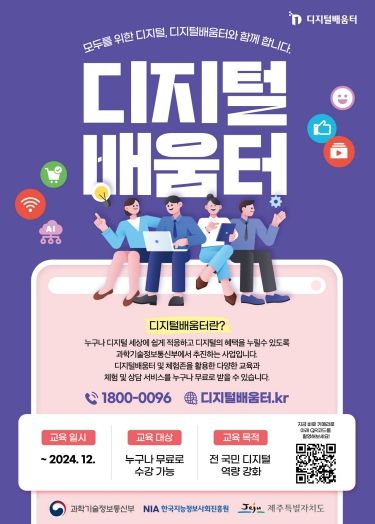 교육을 희망하는 도민이나 단체는 디지털배움터 콜센터 또는 누리집을 통해 신청하면 된다.