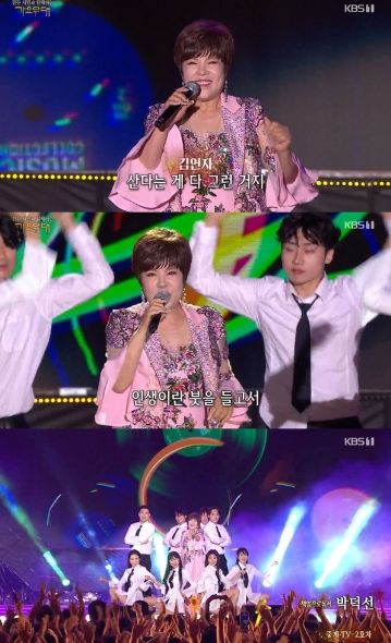 특히 김연자는 ‘아모르파티’ 무대로 엔딩을 장식하며 존재감을 드러냈다. 김연자는 핑크 컬러의 화려한 스타일링으로 무대에 등장해 단번에 시선을 사로잡았다.