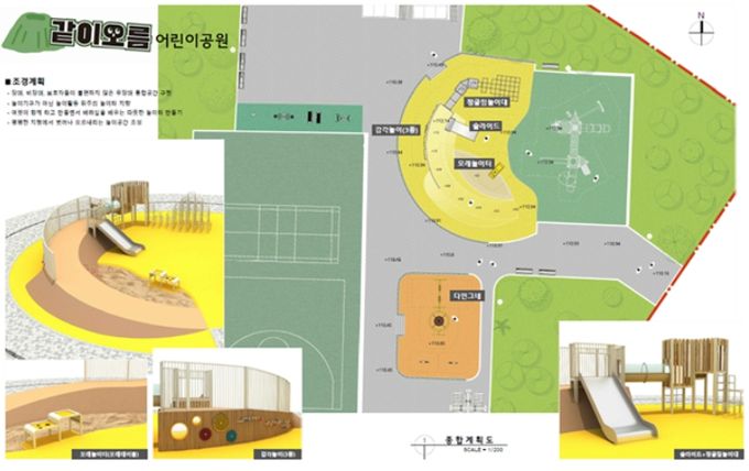 이번 사업은 67호 어린이공원 놀이공간을 재정비하여, 모든 어린이가 함께 즐길 수 있는 시설인 모래놀이터, 다인그네, 슬라이드, 정글짐 등을 설치한다.