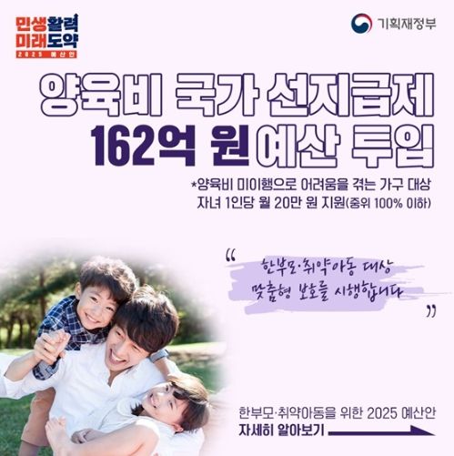 양육비 미이행으로 어려움을 겪는 한부모 가구 대상