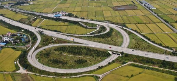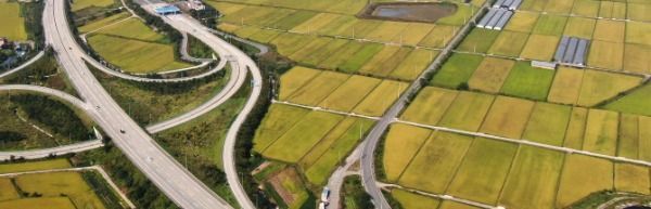 [경남도민뉴스] 추석 연휴 마지막 날이자 절기상 추분을 하루 앞둔 22일 경남 거창군의 최대 곡창지대인 가조 들판을 가로 지르는 광주대구고속도로가 양방향 모두 한산한 모습을 보이고 있다.