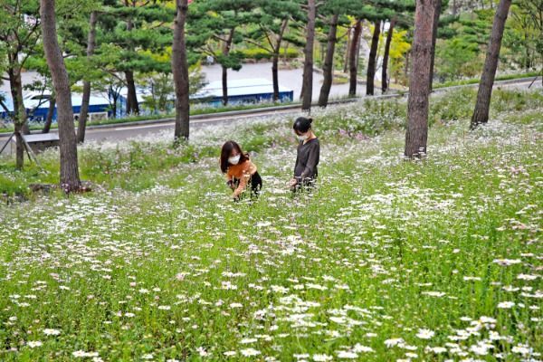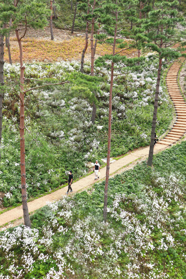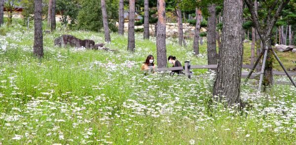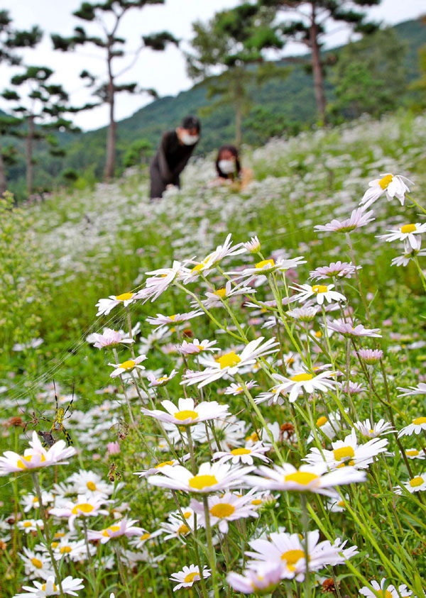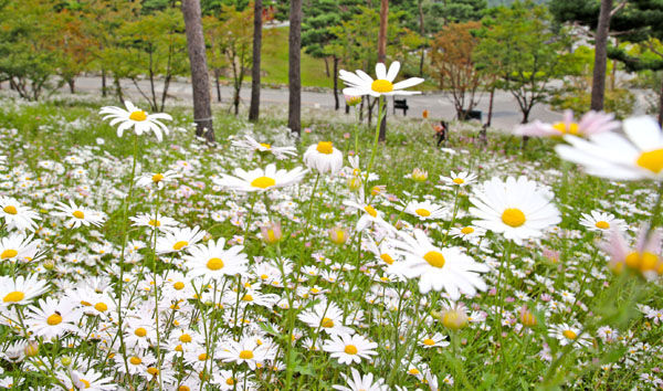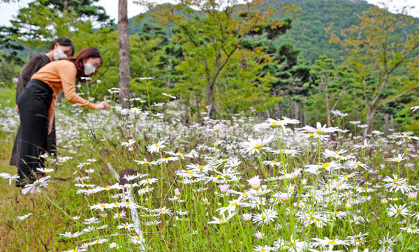 [경남도민뉴스 ]27일 산청군 금서면 동의보감촌에 가을 진객 구절초가 꽃망울을 터트리고 있다. 구절초는 10월 중순이면 만개해 방문객의 발길을 붙잡을 것으로 보인다.
