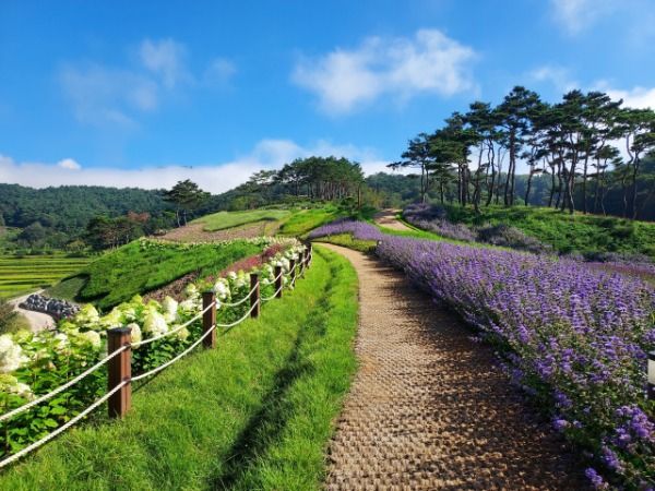 특히 이곳에는 보랏빛 꽃으로 친숙한 라벤더와 일 년 내내 꽃을 피우는 사계 패랭이 등 다양한 꽃이 천년의 숲 전체에 심어져 관람객들의 발길을 사로잡는다.