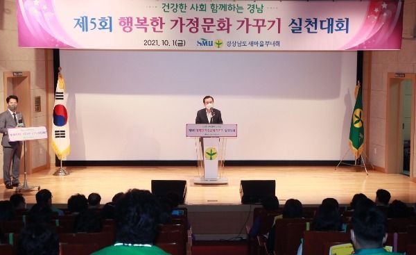 [경남도민뉴스] 경상남도새마을부녀회(회장 한정여)가 주관하는 제5회 행복한 가정가꾸기 실천대회가 10월 1일 함양문화예술회관 소공연장에서 코로나19 방역수칙을 준수한 가운데 열렸다.