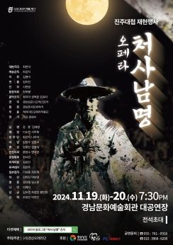 [경남도민뉴스=김종태 기자] 경상국립대학교(GNU·총장 권진회) 사범대학 음악교육과 최강지 교수가 예술감독을 맡아 진주를 중심으로 전국적으로 활발하게 활동하는 (사)경상오페라단은 11월 19~20일 오후 7시 30분 경남문화예술회관에서 남명 조식 선생의 경의사상(敬義思想)을 재조명하고 진주 대첩의 역사를 재현하는 오페라 '처사 남명'을 무대에 올린다.