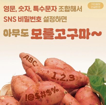 SNS뿐만 아니라, 각종 온라인 서비스 이용 시 영문, 숫자, 특수문자를 조합하여 안전한 비밀번호를 설정하세요.