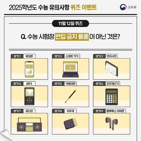 [경남도민뉴스=공동취재 기자] Q. 수능 시험장 반입 금지 물품이 아닌 것은?