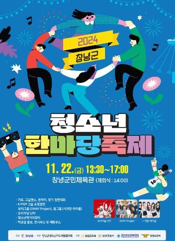[경남도민뉴스=김병현 기자] 창녕군이 주최하고 창녕군청소년지도위원협의회가 주관하는 제24회 창녕군청소년 한마당축제가 오는 22일 창녕군민체육관에서 개최된다.