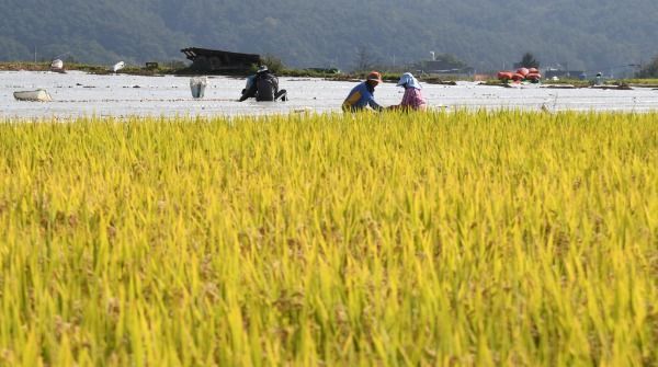 [경남도민뉴스] 절기상 한로를 하루 앞둔 7일 경남 거창군 위천면 들판에서 벼 수확을 끝낸 농민들이 분주하게 마늘을 심고 있다.