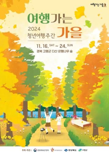 [경남도민뉴스=공동취재 기자] 고령군은 문화체육관광부가 주최하고 한국관광공사가 주관하는 2024 여행가는 가을(11월 1일부터 30일) 캠페인에 맞춰 오는 11월 16일부터 11월 24일까지 9일간 『청년여행주간』을 운영한다.