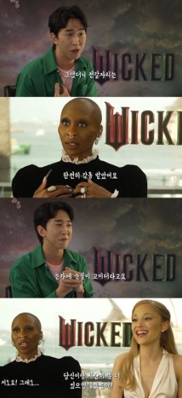 이어 이승국은 10년 전 뮤지컬 '위키드'를 보고 영화에 출연하게 된 신시아 에리보에게 "이 영화를 연출한 존 추 감독님이 당신에게 말한 것을 그대로 인용하겠다"라며 "'당신이 어느 행성에서 왔는지는 모르겠는데, 사람들은 당신을 더 많이 봐야 한다'라고 말했고, 당신이 이 영화의 엘파바가 되는 순간이었다. 당신의 엘파바가 스크린에서 중력을 거스르는 걸 사람들이 지켜보던 그 공간에 있는 건 어땠나?"라고 질문했다.