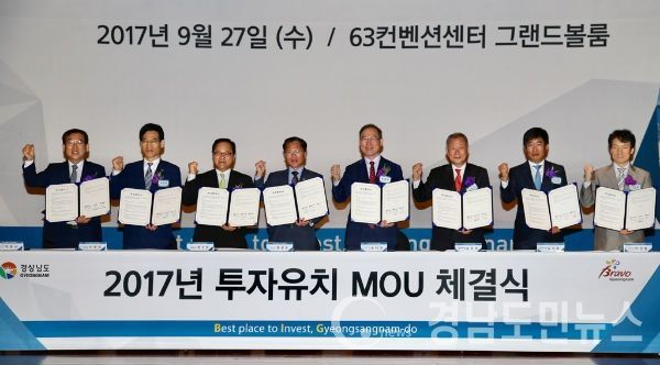 한편 올해 경남도의 투자유치 실적은 남해 석탄가스화복합발전소(IGCC) 유치 등 21건의 국내기업 투자유치에 2조 5,620억 원과 해외 투자유치 FDI(외국인직접투자) 신고 기준 42건 3,970억 원의 투자유치 등 총 2조 9,590억 원으로 당초 목표액 2조 원을 상반기에 달성했으며, 사상 처음으로 3조원 투자유치 실적 달성에 성큼 다가서고 있다.