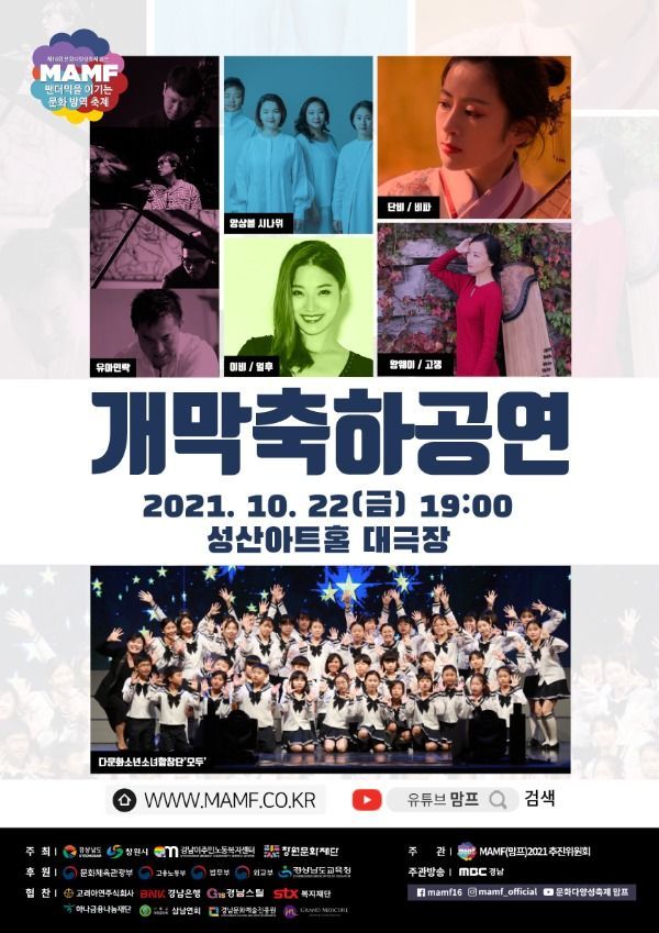 [경남도민뉴스] 올해 16회를 맞는 국내 최대 문화다양성축제인 ‘mamf(맘프) 2021’이 이달 22일부터 24일까지 3일간 창원성산아트홀과 맘프 온라인 플랫폼에서 개최된다.