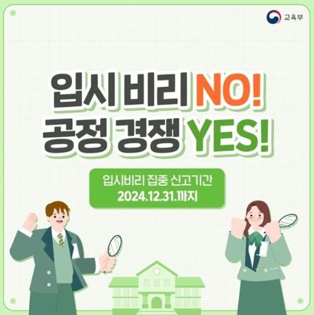 - 신고방법 : 사교육·입시비리 신고센터 누리집 fair-edu.moe.go.kr