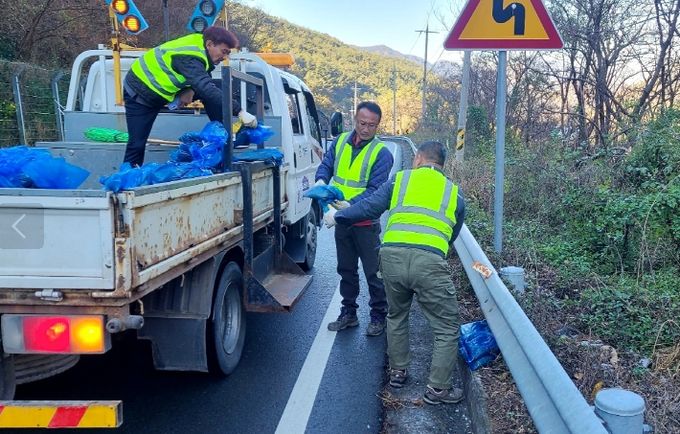 군은 제설제 155톤을 확보했으며, 결빙 우려 구간인 고개마루 등에 적사함 176개소와 모래주머니 1만 개를 배치했다.