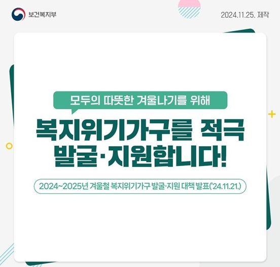 보건복지부는 취약계층의 따뜻한 겨울나기를 지원하기 위해 '겨울철 복지위기가구 발굴·지원 대책'을 수립했습니다. 이번 대책은 5가지 분야의 정책을 중점 추진할 예정입니다.